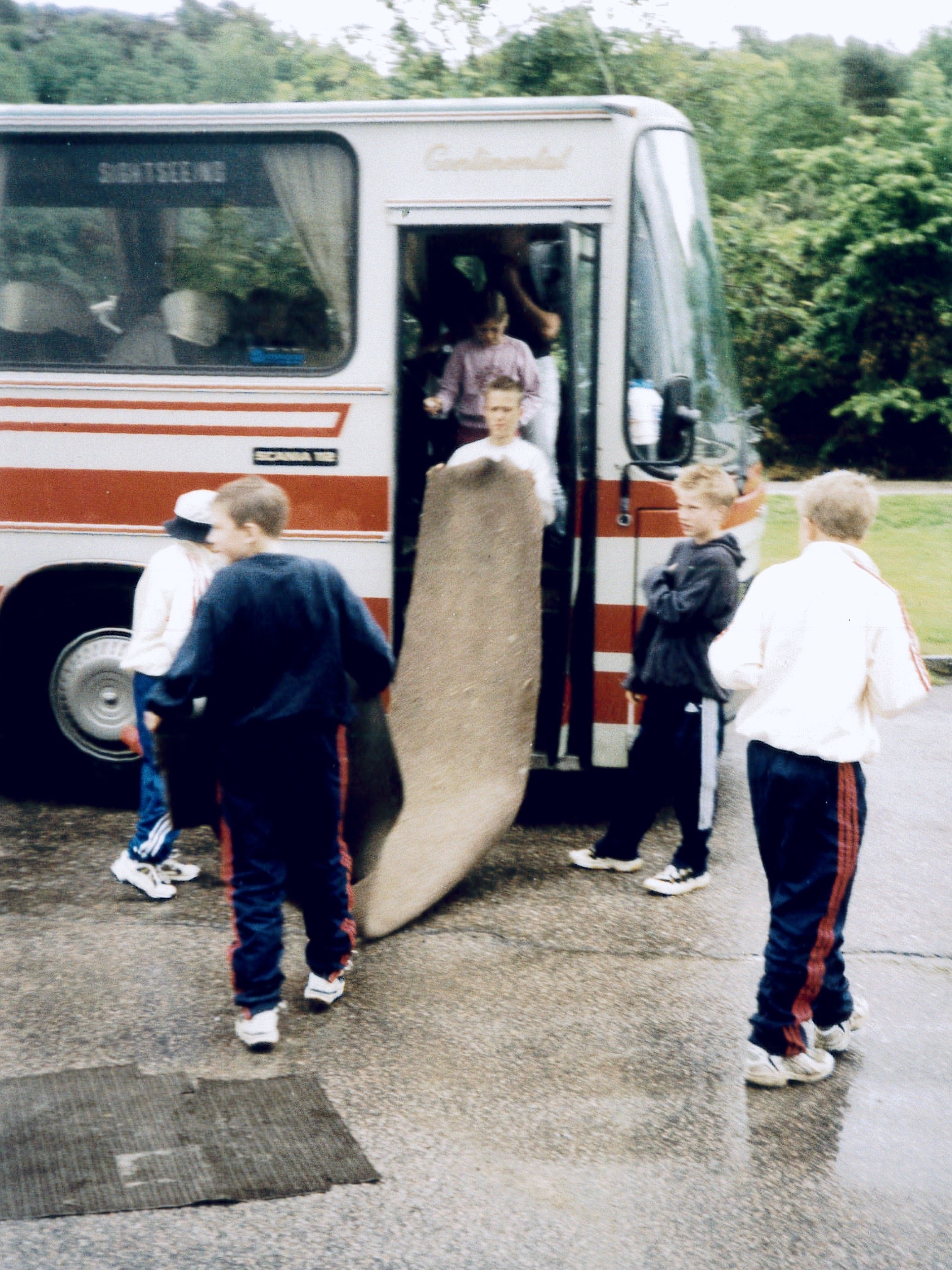 Senare köpte BK en ”ny” buss, den här gången var den röd. Den körde Mange Ljunggren ofta. Den har jag många fler minnen av. Med den var vi bland annat till Lundaspelen och sov liggande i gången (Vi åkte dagsbåt till Stockholm och körde ner till Lund på natten). Under dessa resor fick man se på när de äldre, som hade förtur till borden, spelade kort. I ett senare skede var det vi som hade förtur till borden och fördrev tiden med att spela kort. På det viset lärde vi känna varandra på ett helt annat sätt än vad som varit fallet om vi åkt i personbilar till bortamatcherna.