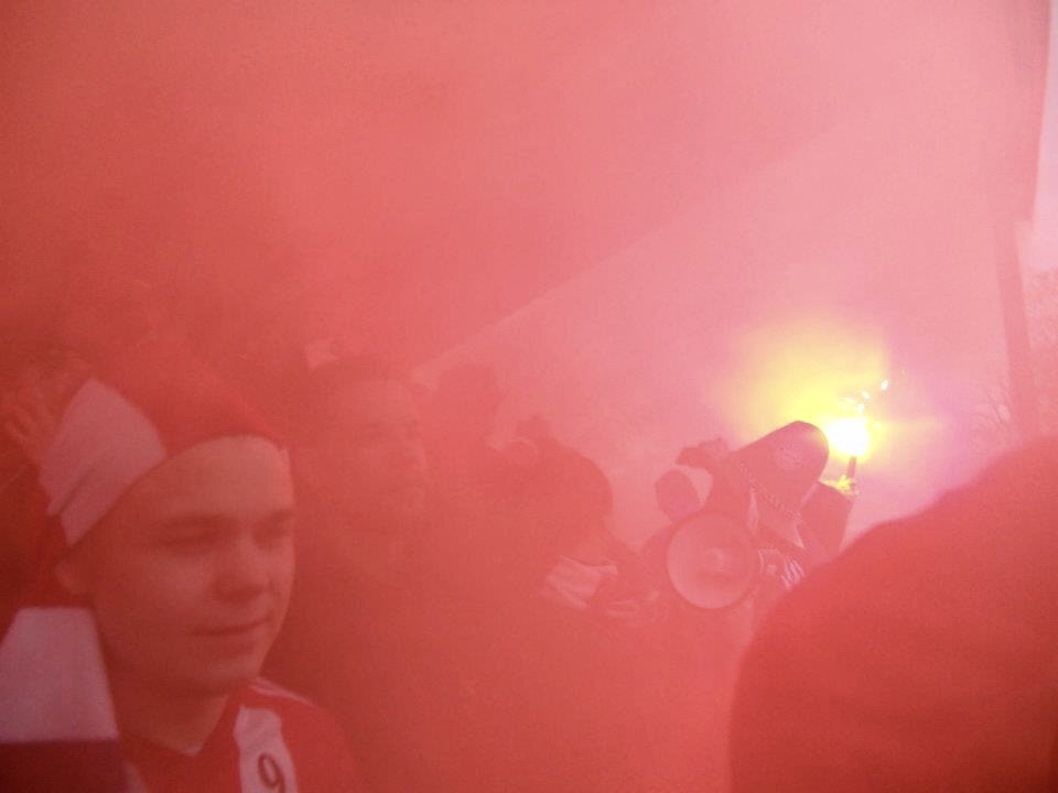 Vi återgår till matchen. När domarn visslade igång den så kickade bedövningen in. Kylan var borta, stressen man bär med sig från vardagen och allting annat som tynger ens axlar försvan. Det är en magisk känsla. Vårt lag var lika fokuserat, en orsak varför ivern att gå på matcher också hållit i sig, år ut och år in, laget och vi, supportrarna, lever i symbios. Det är viktigt att vi är där.