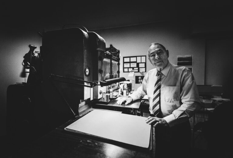 Stig gillar att vara en kugge i verksamheten efter 67 år i den grafiska branschen.